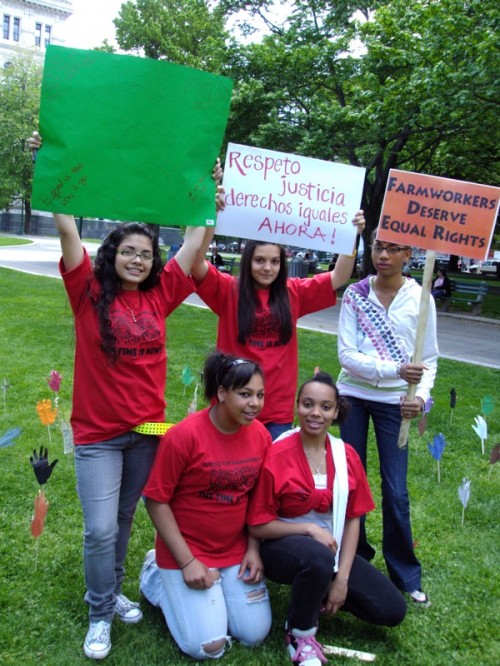 The Youth Arts Group involves high school-aged, at-risk youth in art projects that create change in their communities. Instead of another night in front of the television or engaging in unhealthy behaviors, youth participants spend their Friday nights making documentaries, spoken word projects, and murals to give themselves and other rural New Yorkers a voice, with an emphasis on the rights of farmworkers. They also learn public speaking skills and are actively involved in human rights lobbying.